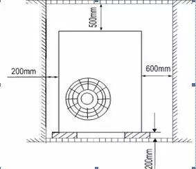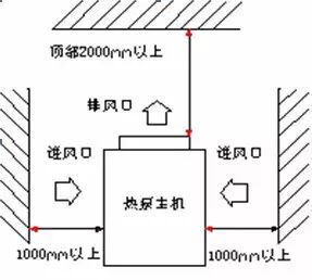 4、为获得更好的节能效果,主机应安装在空气流通良好的环境空间;请勿安装在周围有障碍物或其他不利于机组运行的地方;