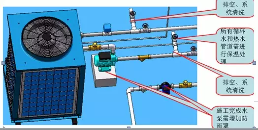 “热泵热水器作为一种新兴制热水产品,其与电热水器、太阳能热水器的设计师完全不同的。那么,空气能工程安装应用注意什么呢?